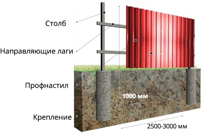 На готовые опоры привариваем металлические лаги, на которые впоследствии монтируется профлист.