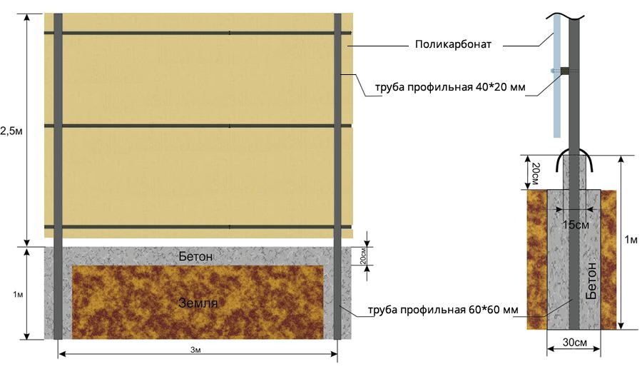 Стандартные характеристики каркаса навеса: столбы 80х80х3мм.